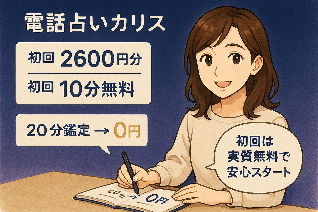 この記事では、不倫や夫の浮気に悩む方が電話占いカリスを利用した体験談と、初回特典を賢く使うコツをお伝えします。