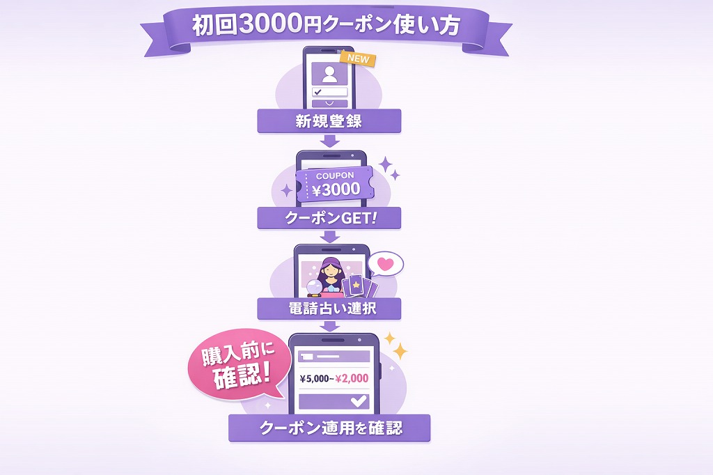 初回3,000円クーポンは、ココナラ電話占いを試すきっかけとしてとても心強い存在です。