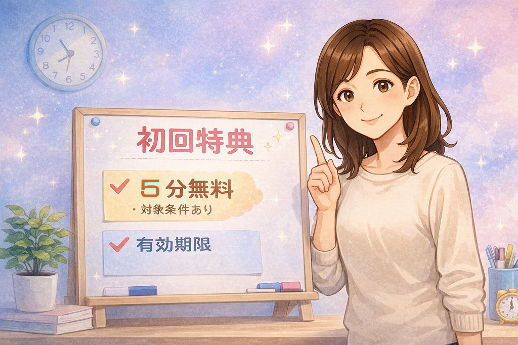 ここを整理できれば、初回特典は不安要素ではなく、安心して試すための材料になります。