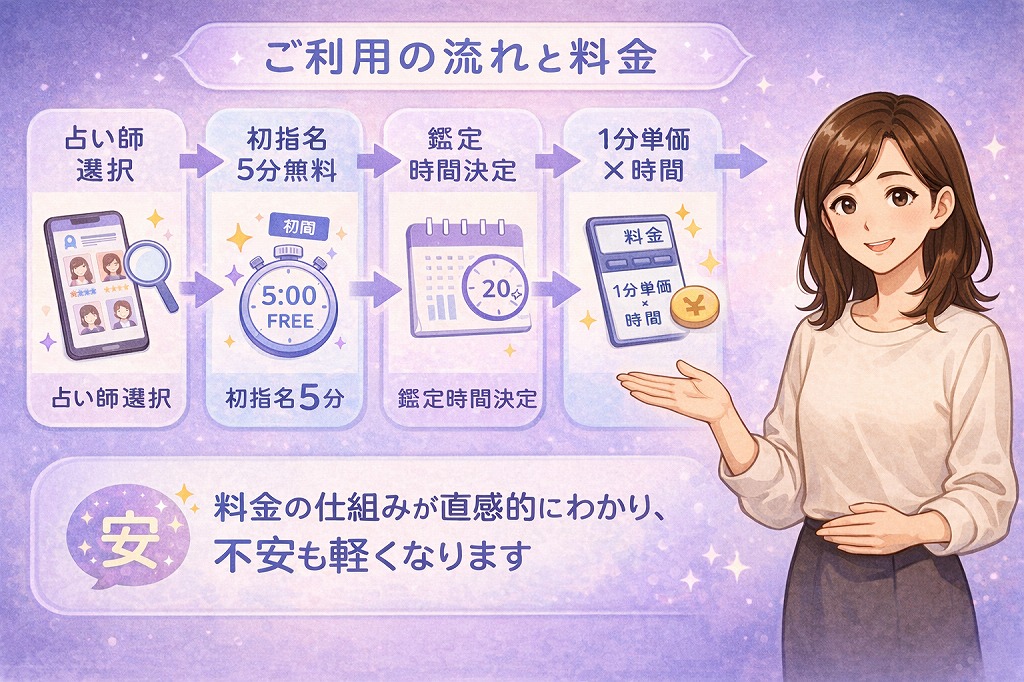 特に初めての電話占いでは、何が無料で、どこから料金が発生するのかが曖昧なままだと、心が落ち着かないですよね。