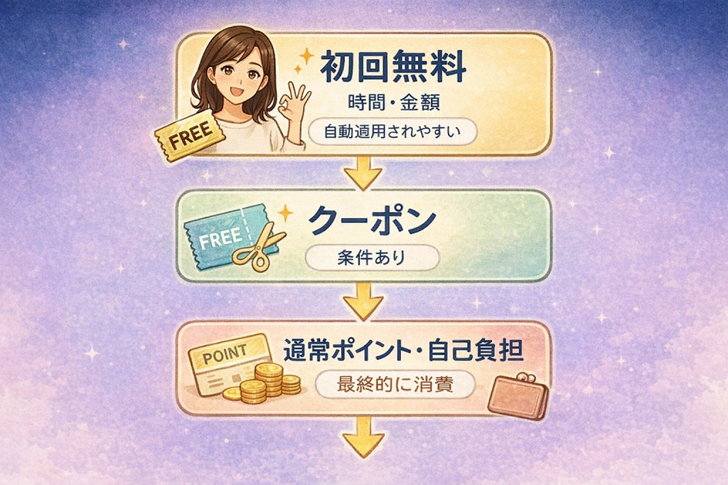 この記事では、初回無料やクーポンの仕組み、特典の種類、使い方、併用ルール、そして最新情報の確認方法まで、一つずつ整理してきました。