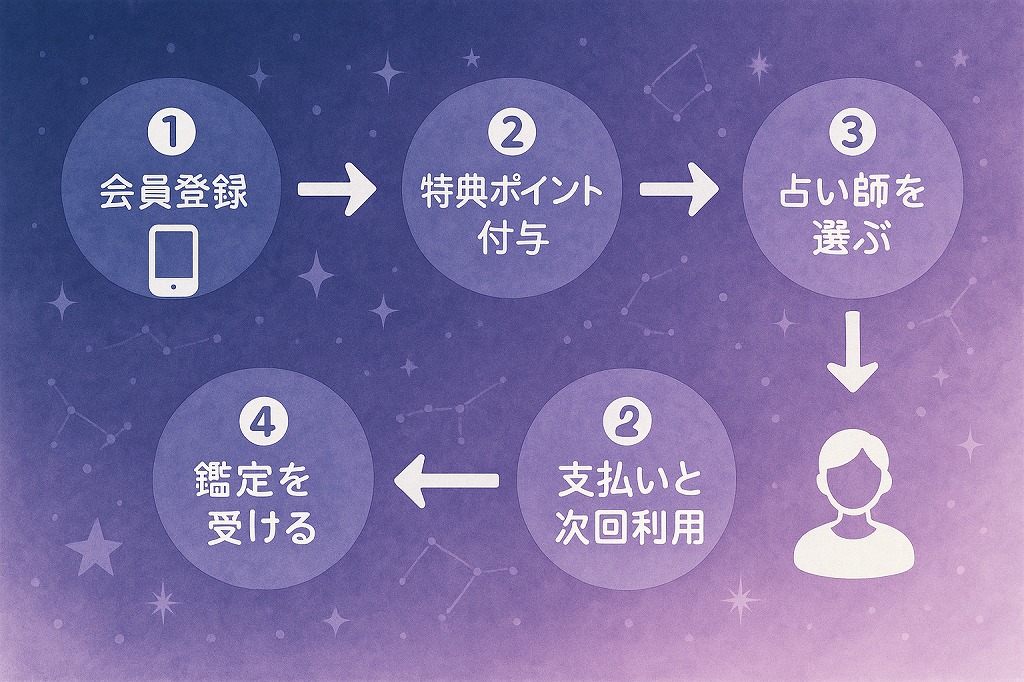 - 初回特典として10分無料鑑定と優先予約が付与され、お試しから始められる