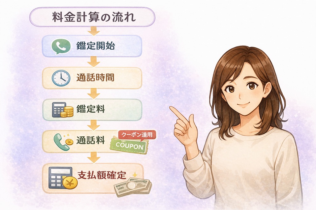 基本的には、通話時間に鑑定料と通話料を合算した1分あたりの金額を掛けたものが支払額になります。