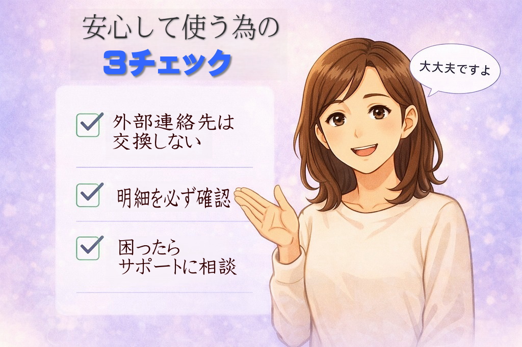 外部連絡先の交換が禁止されている理由や、トラブル時のサポート体制を理解しておくことで、安心感はさらに高まります。