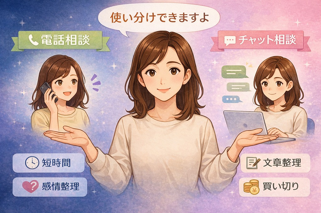 短時間で気持ちを確認したいときは電話、じっくり整理したいときはチャットというように、使い分けができるのは心強いですよ。