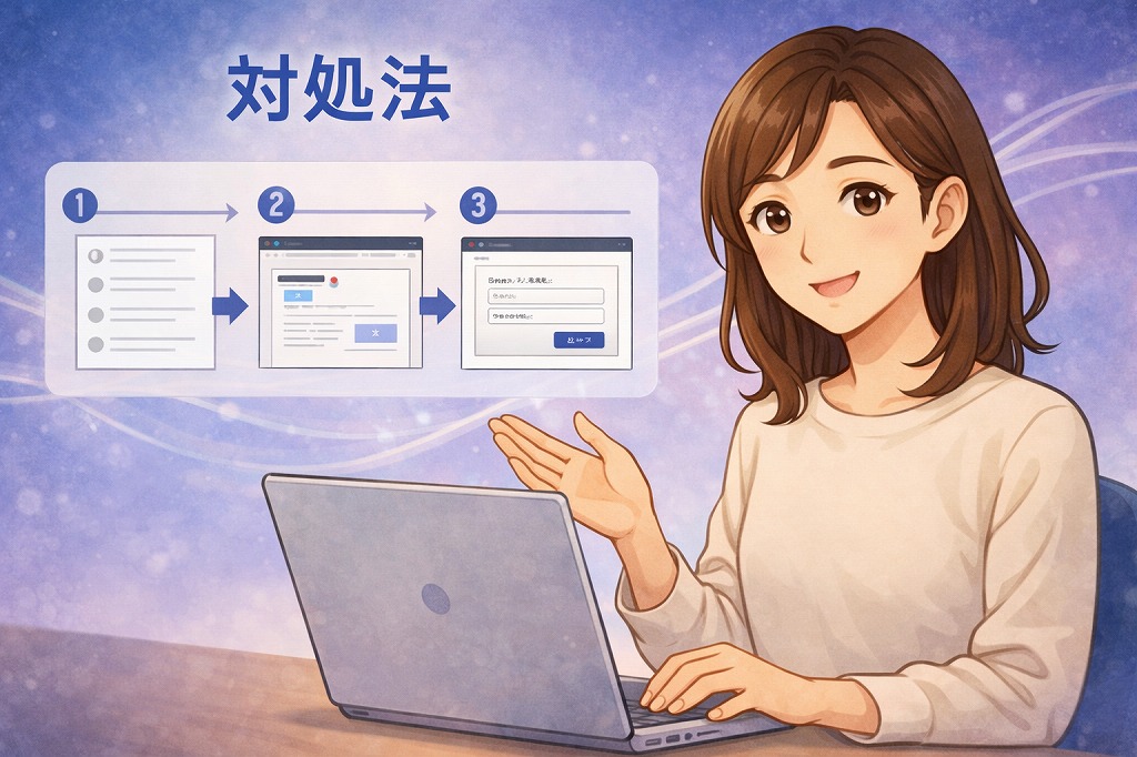基本は、条件確認、再ログイン、手順のやり直しの順で進めるのがおすすめです。
