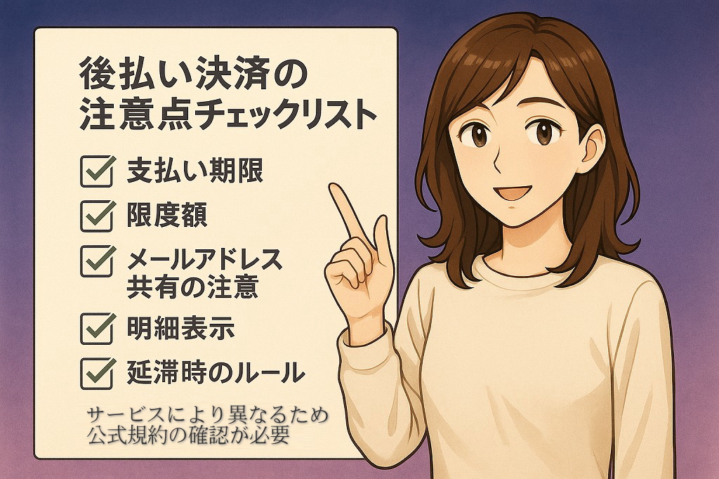 - 後払い:支払い期限を忘れると延滞料金が発生することも