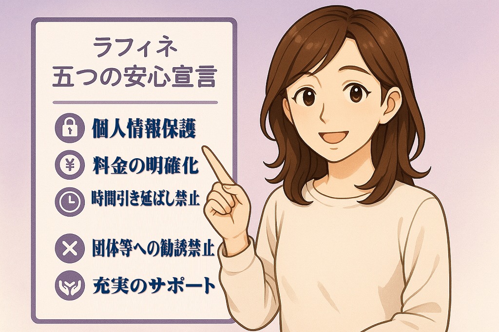 この記事では、ラフィネの安心宣言の中身や料金システム、お得な初回特典まで、公式情報をもとに分かりやすく解説します。