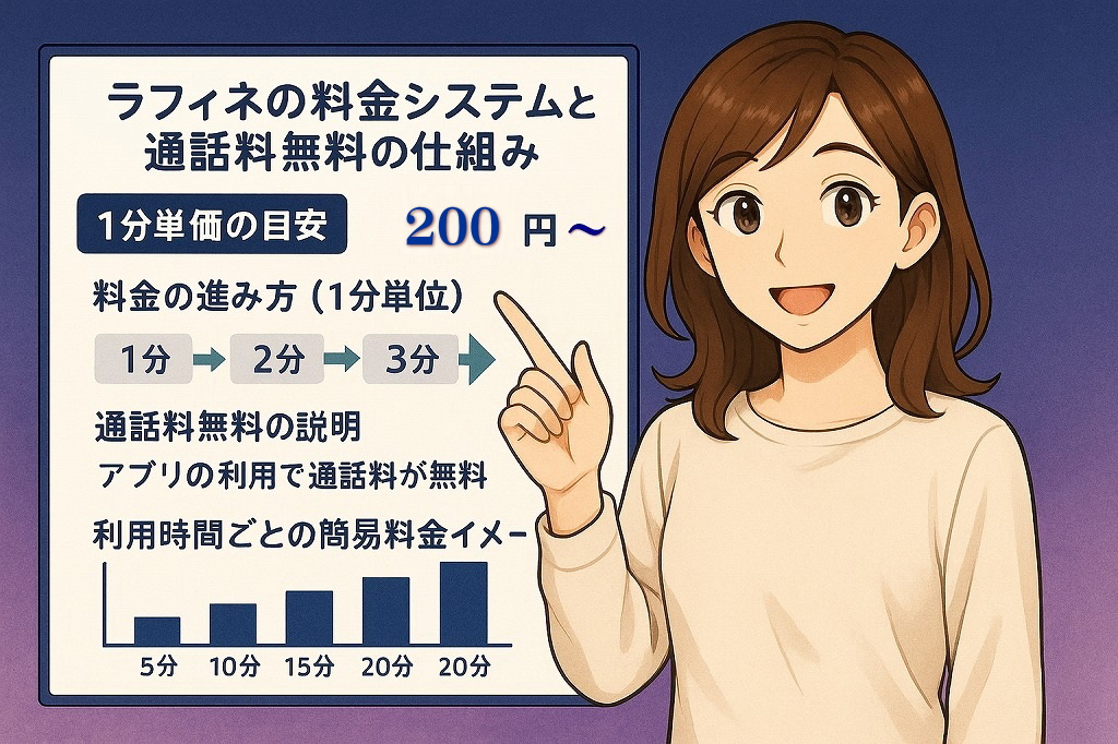また、料金面では1分200円〜400円と業界標準的な価格設定ながら、通話料が完全無料なのがポイント。