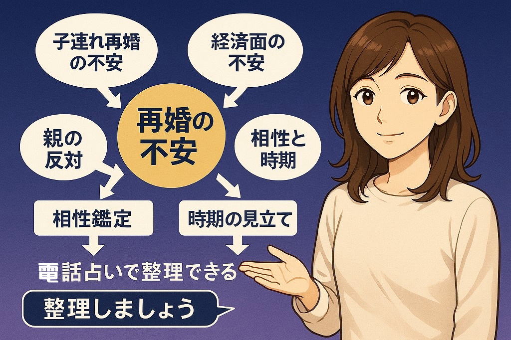 この記事では、電話占い相談を通じて再婚の相性や時期を見極め、子連れ再婚の不安を整理する方法をご紹介します。