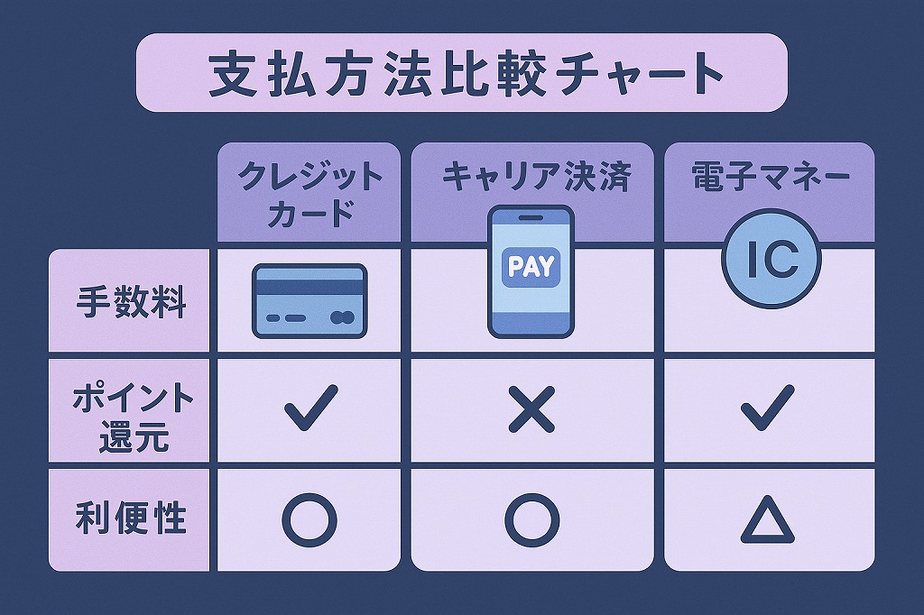- キャリア決済:基本的に手数料なし、キャリアによってはポイント還元あり
