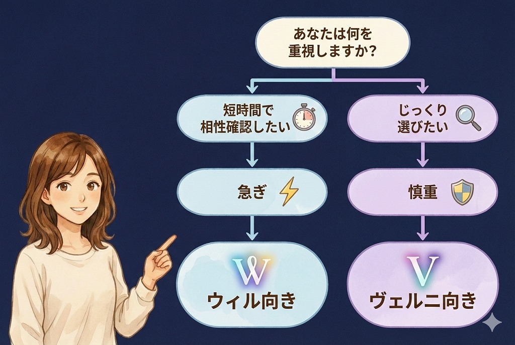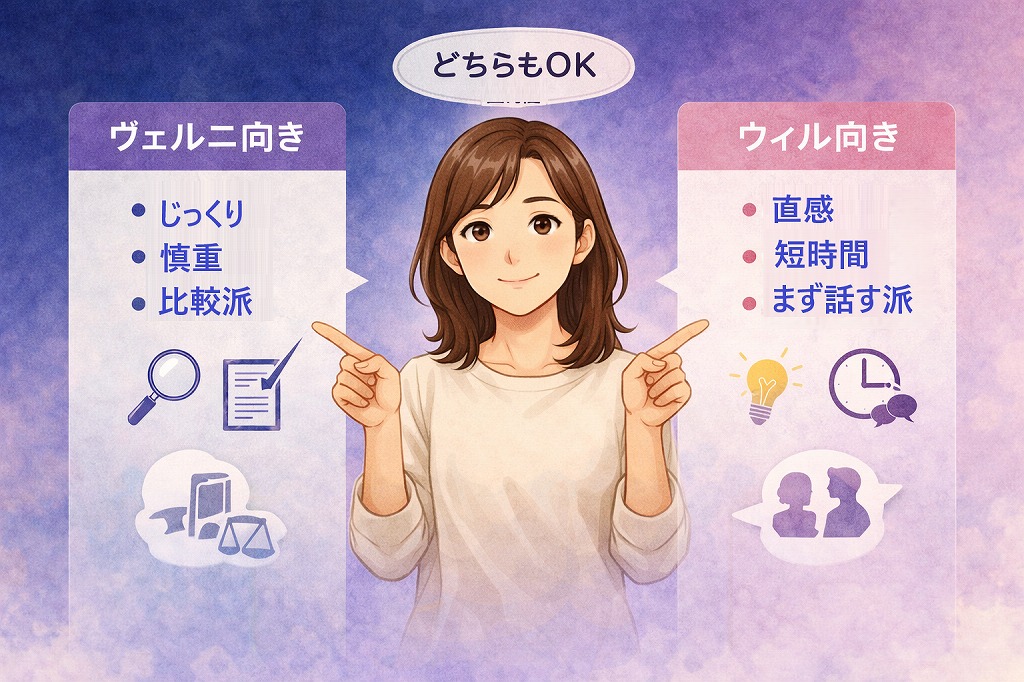 ここまで、電話占いヴェルニとウィルについて、料金や初回特典、待ち時間、得意分野、口コミ、向いている人という視点から整理してきました。