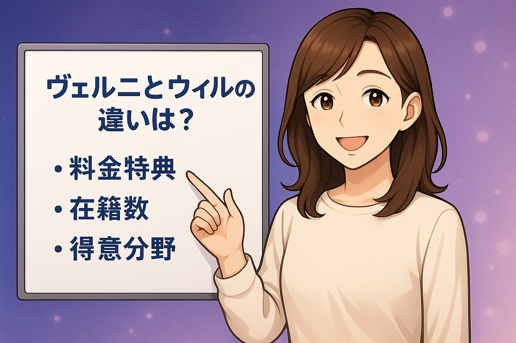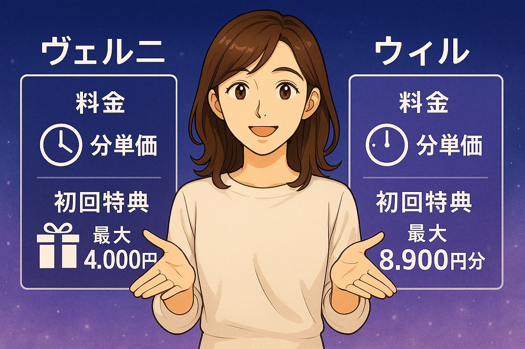 比較表|ヴェルニ vs ウィル 料金 初回特典 在籍数 待機 得意分野