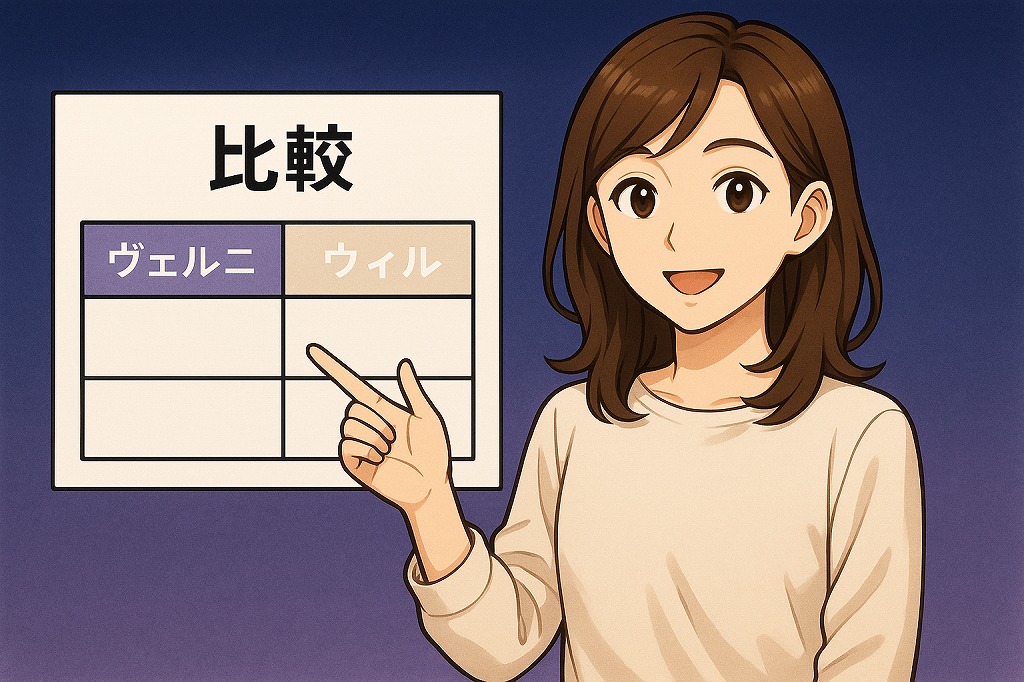 ヴェルニとウィルの違いを一目で比較できるよう、表にまとめてみました。