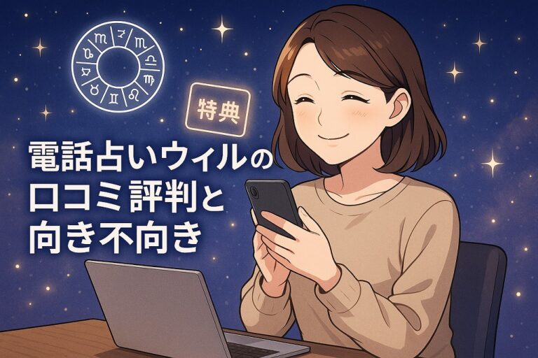 電話占いウィルの口コミ評判を徹底検証。良い口コミと悪い口コミの傾向、向いている人と向いていない人、料金や最大8,900円相当の初回特典、登録手順まで詳しく解説します。